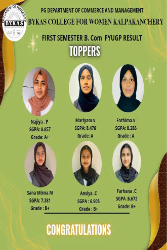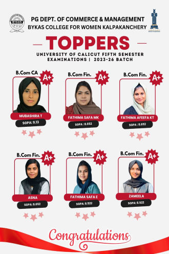 BYKAS College for Women, Kalpakanchery, is a newly established self-financing women’s college in 2012, affiliated to Calicut University to equip students with value based quality education for attaining high goals in the fields of education as well as employment. To enable and encourage our students to face the challenges of the changing world, providing state of the art facilities in a safe and salubrious campus.